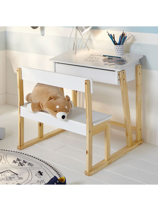 Przedstawiamy eleganckie biurko dziecięce od renomowanego francuskiego producenta Atmosphera Créateur d'intérieur, które łączy w sobie klasyczny design z funkcjonalnością. To idealne miejsce do nauki, rysowania i pisania, które wspiera rozwój Twojego dziecka w komfortowych warunkach.