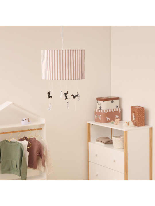 Lampa dziecięca SCOTT to doskonały wybór dla każdego malucha, który pragnie wprowadzić do swojego pokoju radosny i przytulny klimat. Okrągły klosz o średnicy 29 cm, ozdobiony brązowo-białymi paskami oraz urokliwymi pieskami, przyciąga wzrok i dodaje uroku każdemu wnętrzu. Dzięki swojemu unikalnemu designowi, lampa staje się nie tylko źródłem światła, ale także stylowym elementem dekoracyjnym.