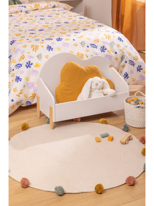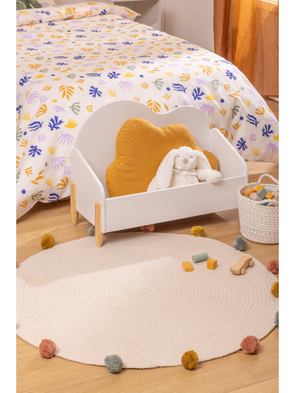 Urokliwe wzory - kwiatek, chmurka i miś - sprawiają, że skrzynia doskonale wpisuje się w dziecięcy świat. Każdy z tych motywów dodaje radości i koloru do wnętrza, tworząc przytulną atmosferę w pokoju. Skrzynia FJELLA nie tylko pełni funkcję praktyczną, ale również estetyczną, harmonizując z różnymi stylami aranżacji wnętrz.