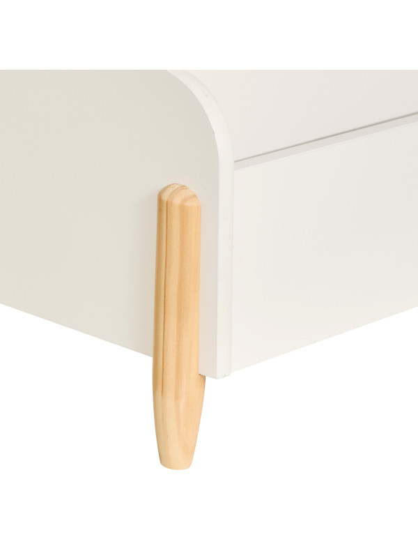 Wykonana z wysokiej jakości MDF oraz wyposażona w solidne sosnowe nogi, skrzynia FJELLA jest nie tylko trwała, ale także bezpieczna dla najmłodszych. Posiada certyfikat FSC, co oznacza, że materiały użyte do jej produkcji pochodzą z odpowiedzialnych źródeł, co jest istotne dla świadomych rodziców dbających o środowisko.