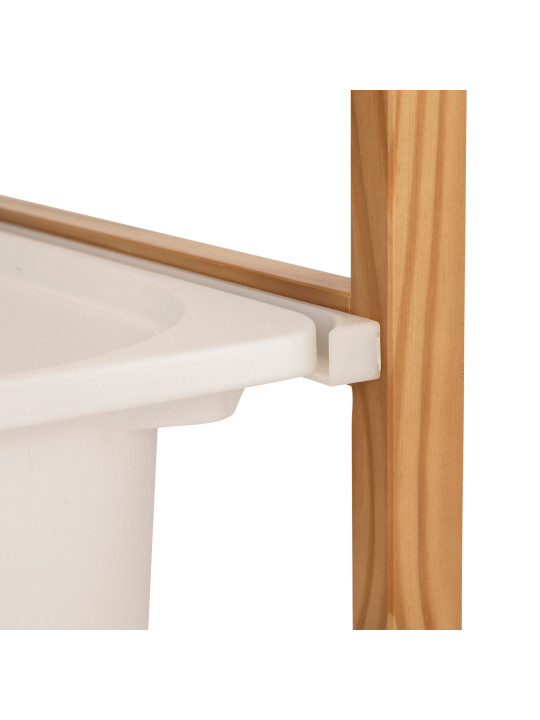 Regał wyposażony jest w cztery pojemniki o pojemności 8L każdy, co umożliwia łatwe przechowywanie różnorodnych przedmiotów. Pojemniki są stabilne i zapobiegają przypadkowemu przewróceniu się, co zwiększa bezpieczeństwo użytkowania, szczególnie w przypadku małych dzieci. Dzięki temu rodzice mogą być spokojni o bezpieczeństwo swoich pociech podczas zabawy.