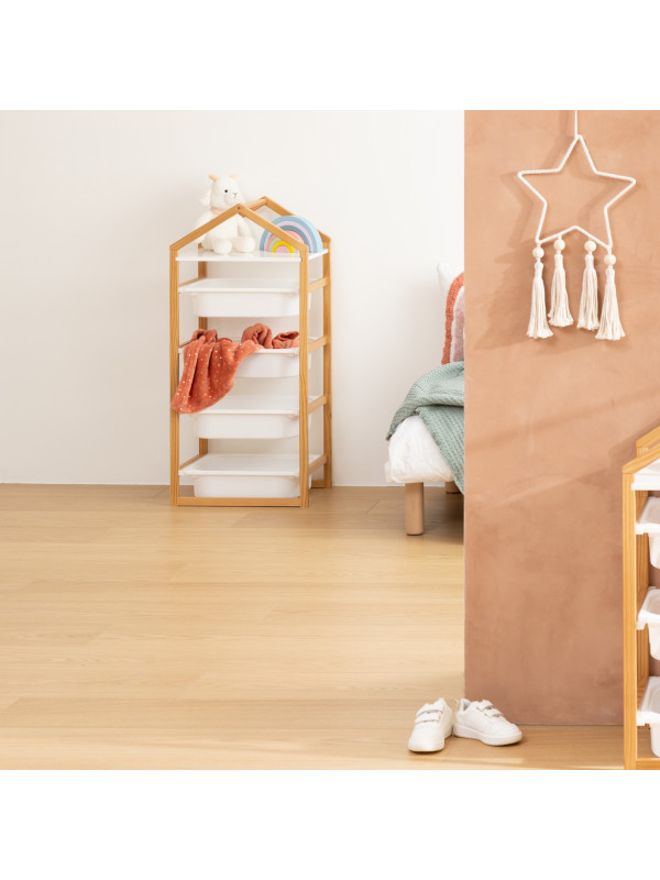 Dodaj ten stylowy regał do swojego wnętrza i ciesz się jego praktycznością oraz estetyką. To doskonały wybór dla rodziców pragnących stworzyć przytulne i uporządkowane miejsce dla swoich dzieci.