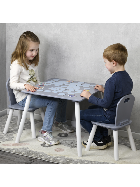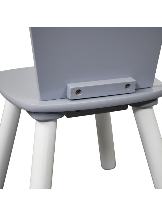 Wykonany z wysokiej jakości MDF, stolik oraz krzesełka nie tylko zachwycają estetyką, ale również charakteryzują się trwałością. Materiały użyte do produkcji posiadają certyfikat FSC, co oznacza, że są przyjazne dla środowiska, co jest istotne dla świadomych rodziców. Stabilna konstrukcja z solidnymi nogami pokrytymi białą farbą zapewnia bezpieczeństwo podczas użytkowania, a maksymalne obciążenie wynoszące do 50 kg sprawia, że zestaw jest odpowiedni dla dzieci w różnym wieku.