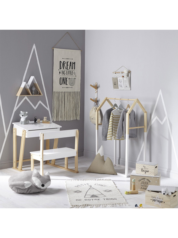 Przedstawiamy wieszak stojący od renomowanego francuskiego producenta Atmosphera Créateur d'intérieur, który łączy w sobie funkcjonalność i estetykę. Jego unikalny kształt domku sprawia, że jest to nie tylko praktyczny mebel, ale także urokliwa dekoracja, idealna do pokoju dziecięcego. Dzięki solidnej konstrukcji, wieszak jest trwały i wytrzymały, co czyni go doskonałym wyborem dla aktywnych maluchów.